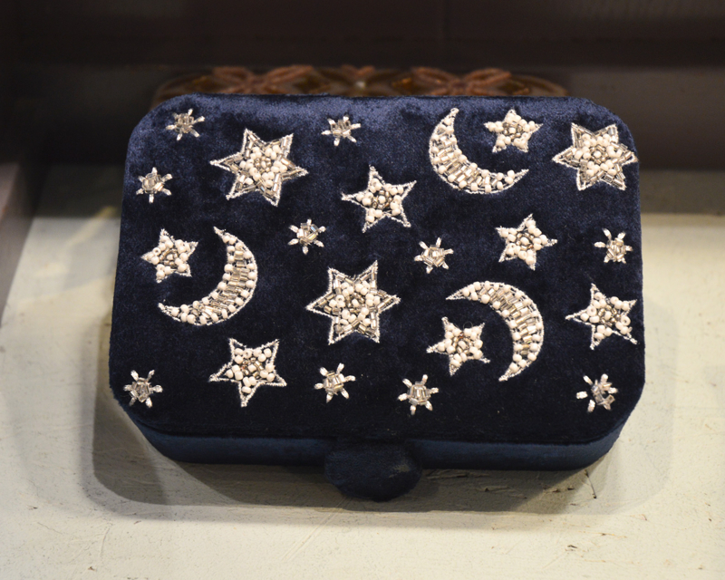 Bijouxdoos Maan en sterren Fluweel - nachtblauw