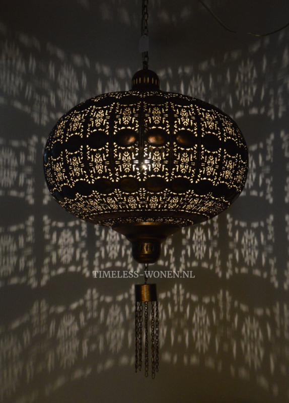 Deze goudkleurige filigrain hanglamp is een echte eye-catcher en past zowel in een klassiek, oosters of bohemian interieur.
